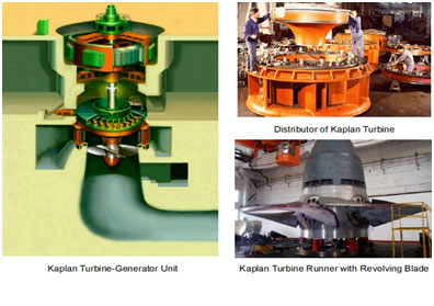 The Kaplan Type Turbine and Propeller type Turbine all are belong to axial flow type turbines which are available for hydraulic power resources of medium and low heads. Our company supplies both the Propeller type (fixed blade type) and the Kaplan type (revolving blade type) turbines. The Propeller type turbines are suitable for hydro-power stations with small or medium capacities and heads, and relatively stable loads, The Kaplan type turbines are suitable for hydro-power stations with large capacities and heads, and relatively unstable loads. The Kaplan Type turbines supplied by our company